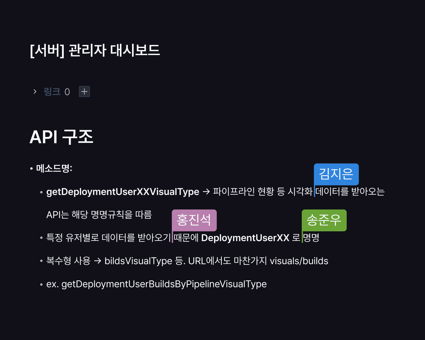 별도의 위키 툴 없이, 작업 안에서 바로 문서를 작성하고 동료들과 실시간으로 편집합니다. 기획 맥락이 작업과 분리되지 않아 실행까지 자연스럽게 이어집니다.