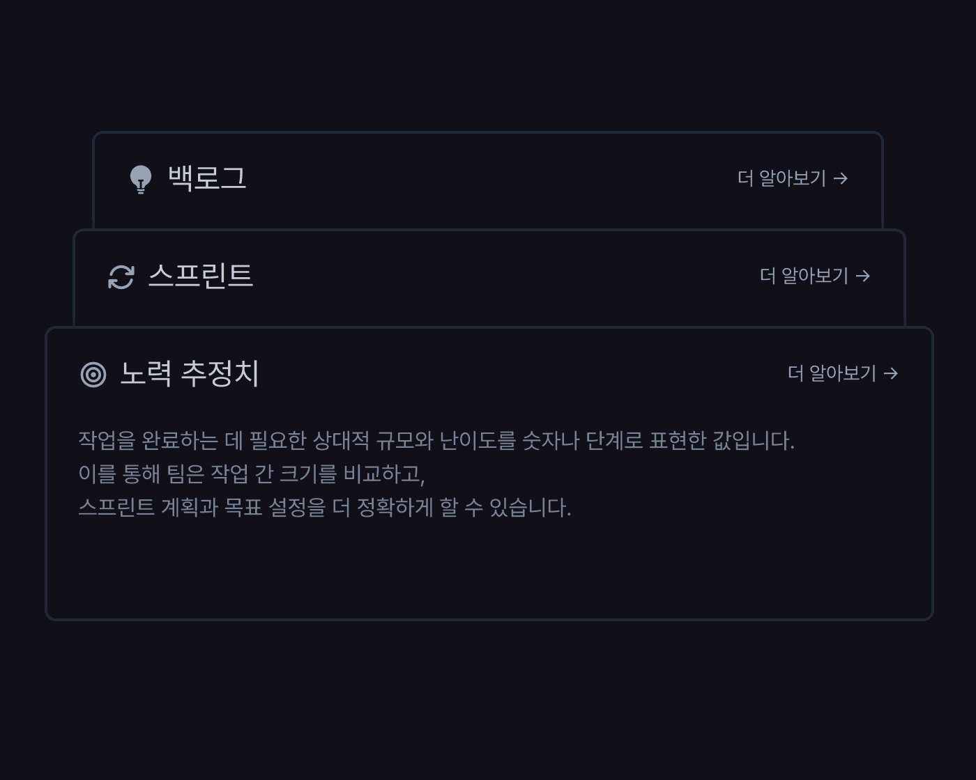 애자일, 스크럼 등 복잡한 방법론을 따로 공부할 필요 없습니다. 백로그, 스프린트, 노력 추정 등 필요한 구조가 이미 설계되어 있어, 누구나 즉시 실행 가능한 계획을 세울 수 있습니다.